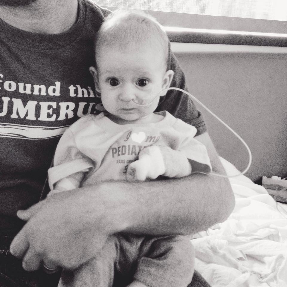 Once here, we were taken back pretty quickly and she had an EKG and chest x-ray done, and had labs drawn and IV placement was attempted. Cardiology came down and explained her heart defect, and that her heart is also enlarged and there was fluid on her lungs from the excessive work her heart had been doing (congestive heart failure). They went over the symptoms of her VSD: constantly feeding, falling asleep quickly when eating but not staying asleep very long before resuming feeding, sweating while feeding, fast breathing, difficulty growing and gaining appropriate weight. She had all of them, which we knew from Googling them after hearing about her murmur, so it wasn’t a complete surprise, but the symptoms also have totally innocent explanations, too. People say that newborns nurse a lot and not to pay attention to the interval between feeds. Babies get sleepy when eating. Sometimes babies get sweaty when nursing from the shared body heat. Babies breathe quicker than big people. She has had some latching difficulties from birth, so we thought the weight gain issues were due to poor milk transfer. But nope. She’s had a large hole in her heart all along, making it impossible for her to feed well enough to get full, thus the constant feeding. And the sweating. And the drowsiness. And the lack of actual naps. And the lack of weight gain. And the signs of inefficient milk transfer. It was like she was always running a marathon and trying to eat on top of that. So we are in the hospital now, trying to get her to gain weight. If she can start gaining weight, they are going to let us go home and let her continue to grow and get stronger for a couple of months before going in to close the hole surgically. If she can’t start gaining, they’ll have to repair it sooner. Right now she needs a feeding tube to get in her feeds (they let her eat for 15 minutes and whatever she hasn’t finished at that point goes in her NG tube), but they hope she will gain strength and be able to take them orally before we go home. They’ve given her meds to draw the fluid build-up out of her lungs and they are much better, but she is still struggling a lot with feeding. She isn’t supposed to nurse anymore for now because it takes more work than a bottle feed and they can’t track her calories and intake, so I’m pumping and they are fortifying my milk to make it more calories per ounce. We are SO thankful we found a bottle she can take recently, I can’t imagine trying to do all that trial and error while we are inpatient! She also likes her binky a lot more now, probably because she misses nursing, so we are thankful she’s accepting that substitute.